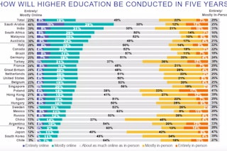 Online learning could be a defining feature of higher education in five years, according to a new Ipsos survey conducted for the World Economic Forum. As a second wave of COVID-19 saw cases resurging across the globe in October,” said the WEF’s website, “more than 27,500 adults in 29 countries were asked how they saw higher education being conducted in their country, five years from now.”